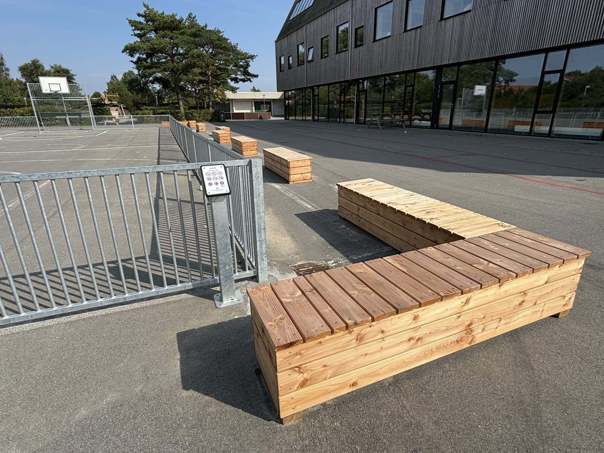 Gilleleje Skole har fået en dejlig stor transparent multibane med mulighed for bl.a. fodbold og basket. Omkring multibane er placeret transportable siddebænke, som kan stå adskilt eller stå samlet, så skolen kan skabe det læringsmiljø de ønsker. Gilleleje Skole, Afd. Parkvej Gilleleje Skole, Afd. Parkvej Gilleleje Skole, Afd. Parkvej Gilleleje Skole, Afd. Parkvej Gilleleje Skole, Afd. Parkvej