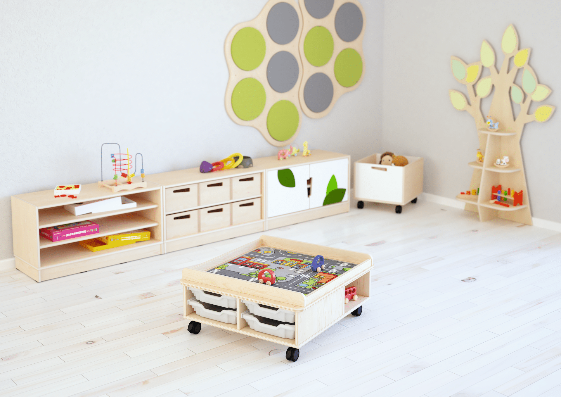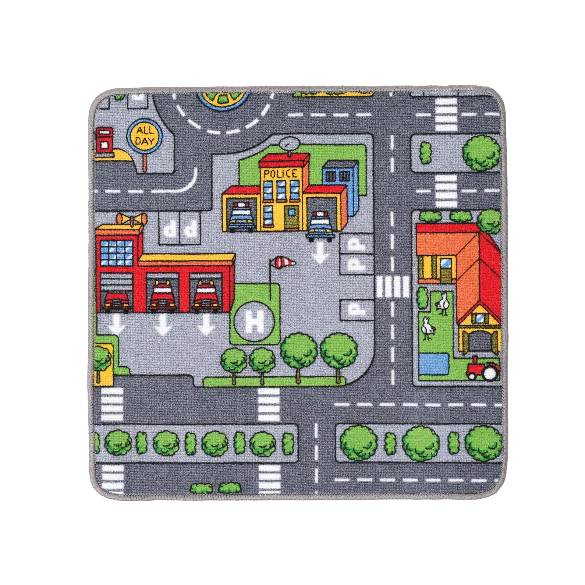 Sjov og slidstærk måtte til bord med trafiktema. Perfekt til leg med biler, veje og bymiljøer – ideel til institutioner og legeområder.