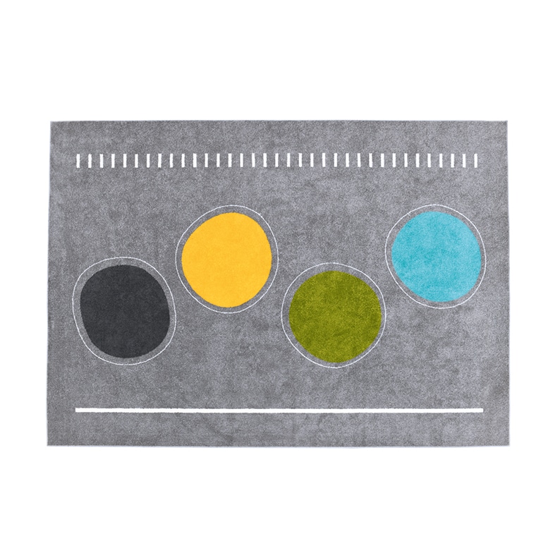 Tæppet er fremstillet af 100% PP heat-set frise (enkelt garn). Materialet kombinerer blødhed med slidstyrke. Med en fleecehøjde på 7 mm og en størrelse på 3×4 m giver tæppet plads til fire børn. Det egner sig godt til forskellige læringsaktiviteter.