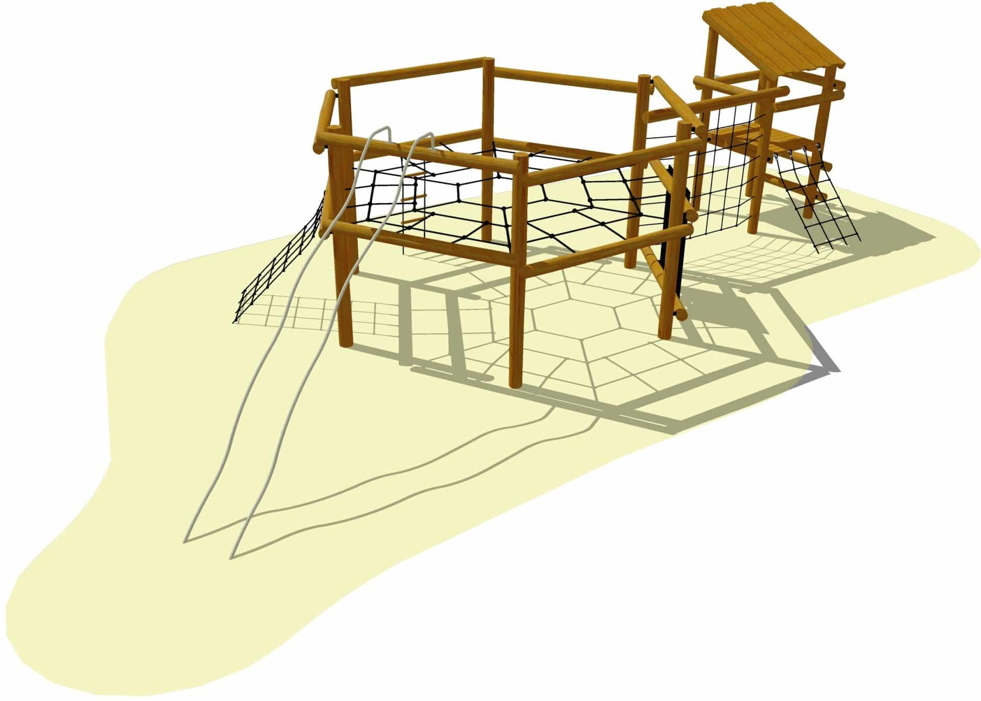 Den helt store oplevelse og udfordring for motorik, balanceevne og lattermuskler. Der er plads til masser af børn i de to tårne, og de kan tumle i både rebstige, klatrenet, 260 cm høje rutsjestænger, brandmandsstang og det store tårns gyngende gulv.