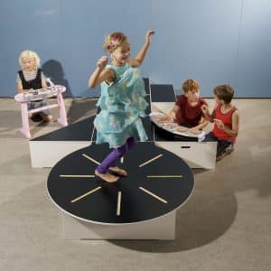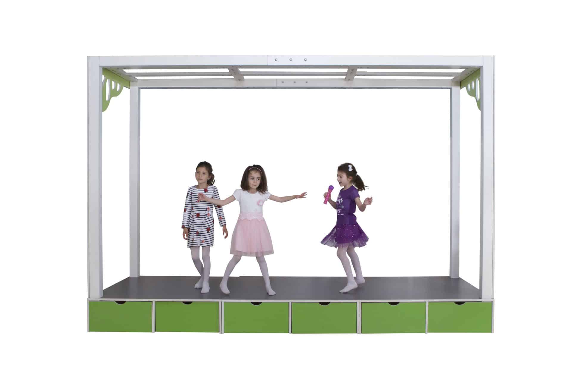403014 Scene med perkulatop, 2 podier og 4 skuffer 18 mm H240 x B240 x D120 cm