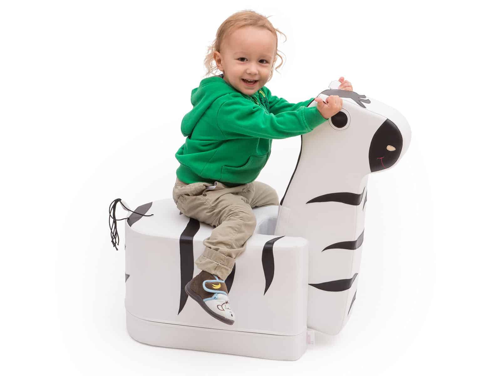 Blød skumzebra til børn i vuggestuer og børnehaver. Perfekt til motorik, balance og fantasifuld leg i daginstitutioner.