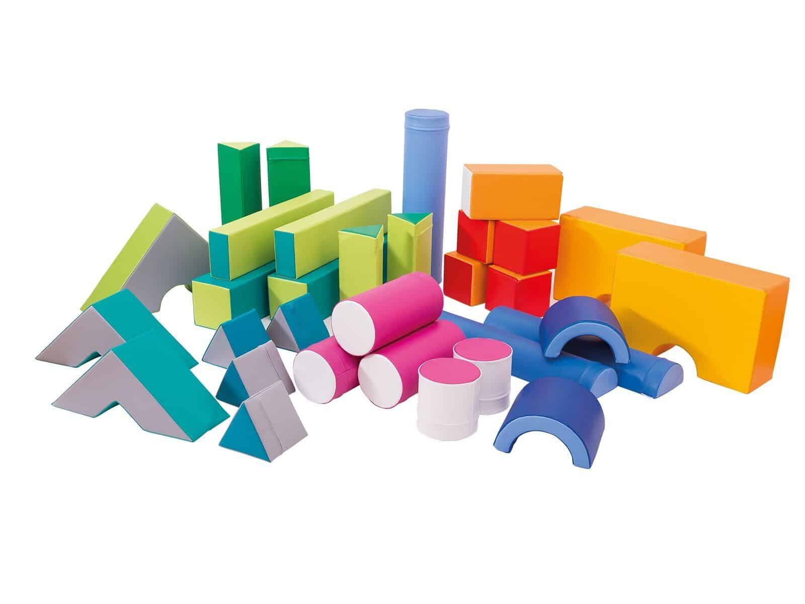 Blødt og farverigt skumklodser legesæt til børn. Styrker motorik, koordination og kreativ leg. Sikkert, rengøringsvenligt og ideelt til daginstitutioner.