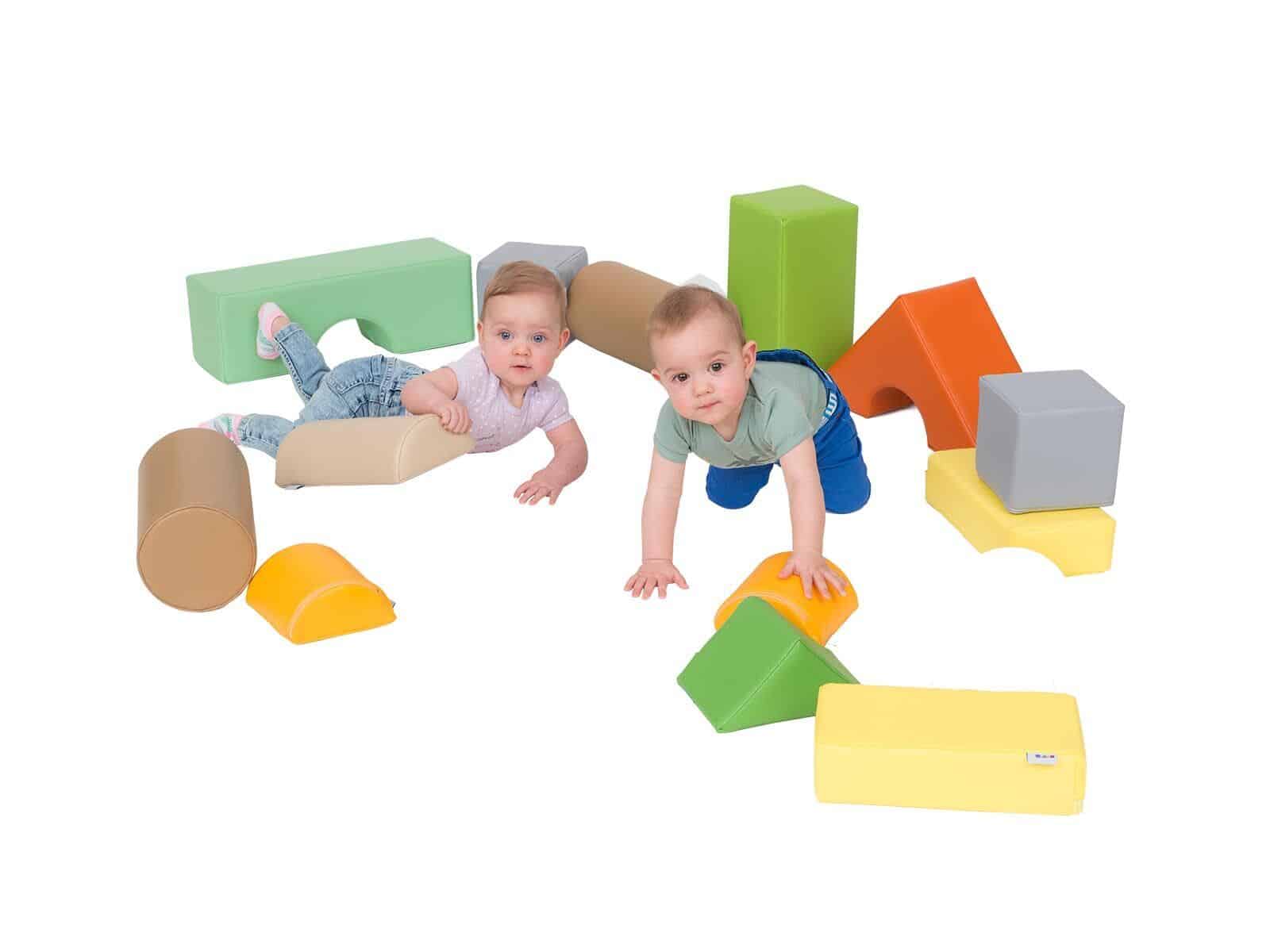 Blødt og farverigt skumklodser sæt til babyer. Styrker motorik, koordination og kreativ leg. Sikkert, rengøringsvenligt og ideelt til daginstitutioner.
