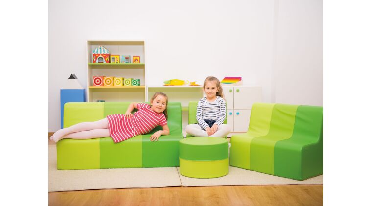Skummøbler med blødt skum med høj tæthed gør legen sjovere. Nem at rengøre. Aftageligt betræk. Skjult lynlås garanterer sikker leg, uden risiko for at blive ramt af metaldelen. Forstærkede syninger gør den ekstra slidstærk og eliminerer krølningseffekten af materialet ved gentagende tryk.